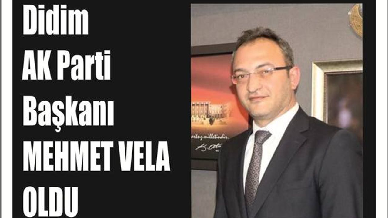 AK Parti Didim İlçe Başkanlığına boşalan ilçe başkanlığı için AK Parti Genel Merkezinde yapılan görüşmeler neticesinde Mehmet Vela İlçe Başkanı oldu. HABER : MAVİ DİDİM GAZETESİ