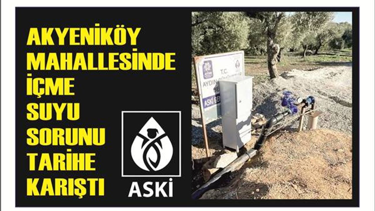 Aydın Büyükşehir Belediyesi ASKİ Genel Müdürlüğü tarafından yürütülen çalışmalar kapsamında Akyeniköy mahallesinde uzun yıllardır devam eden içme suyu sıkıntısı tamamen çözüldü. ASKİ ekiplerince açılan yeni içme suyu kuyuları, bugün itibariyle devreye alınarak mahalle halkının hizmetine sunuldu.
