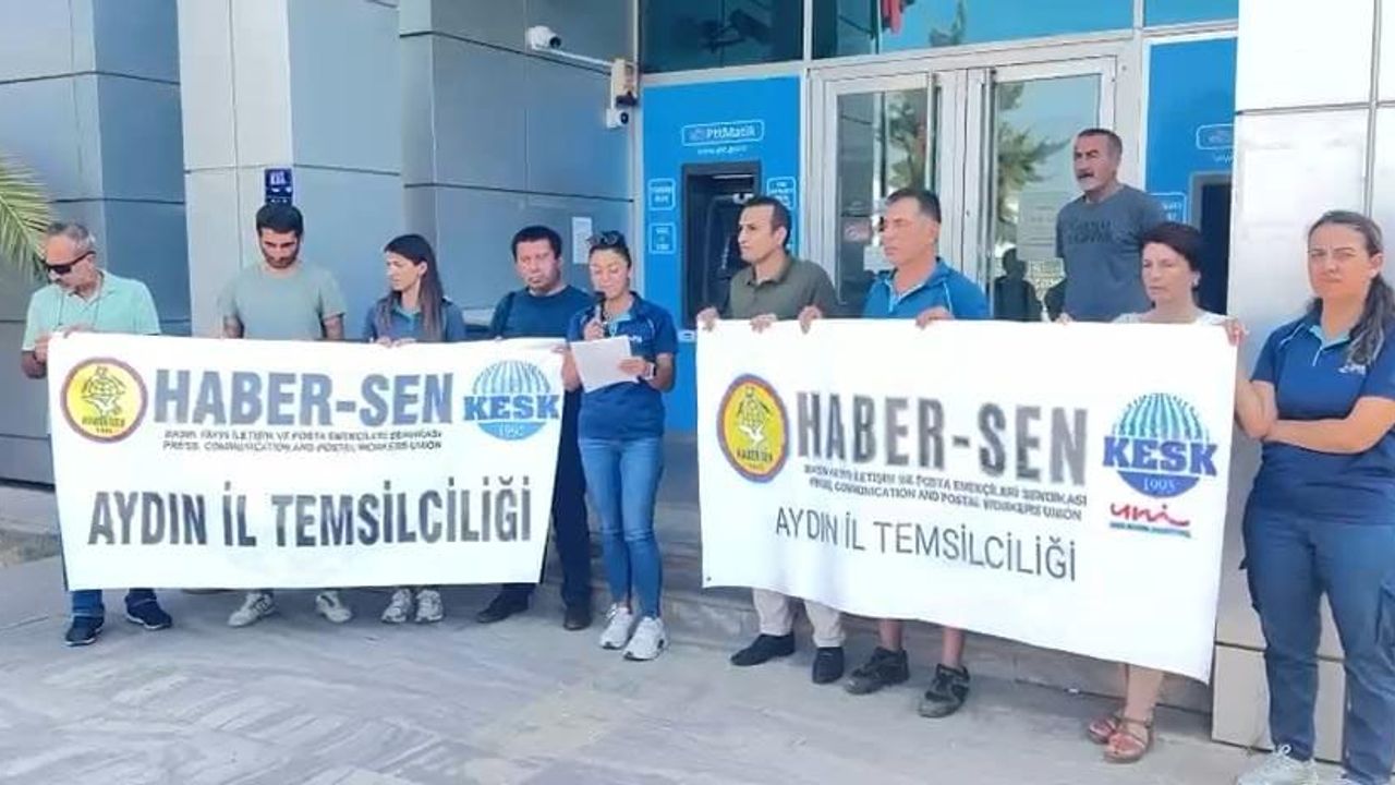 Didim Ziraat Odası önünde bugün 12:30 da Haber – Sen Basın Yayın iletişim ve Posta Emekçileri Sendikası Aydın İl Temsilciliği tarafından yapılan basın açıklamasında; emeğinin karşılığını almak hakkını savunmak ve PTT’nin yeniden güçlü bir kamu kurumu haline gelmesini isteyen sendikalı memurlar ve işçiler kısa süren eylemlerinde aşağıdaki basın açıklaması okundu.