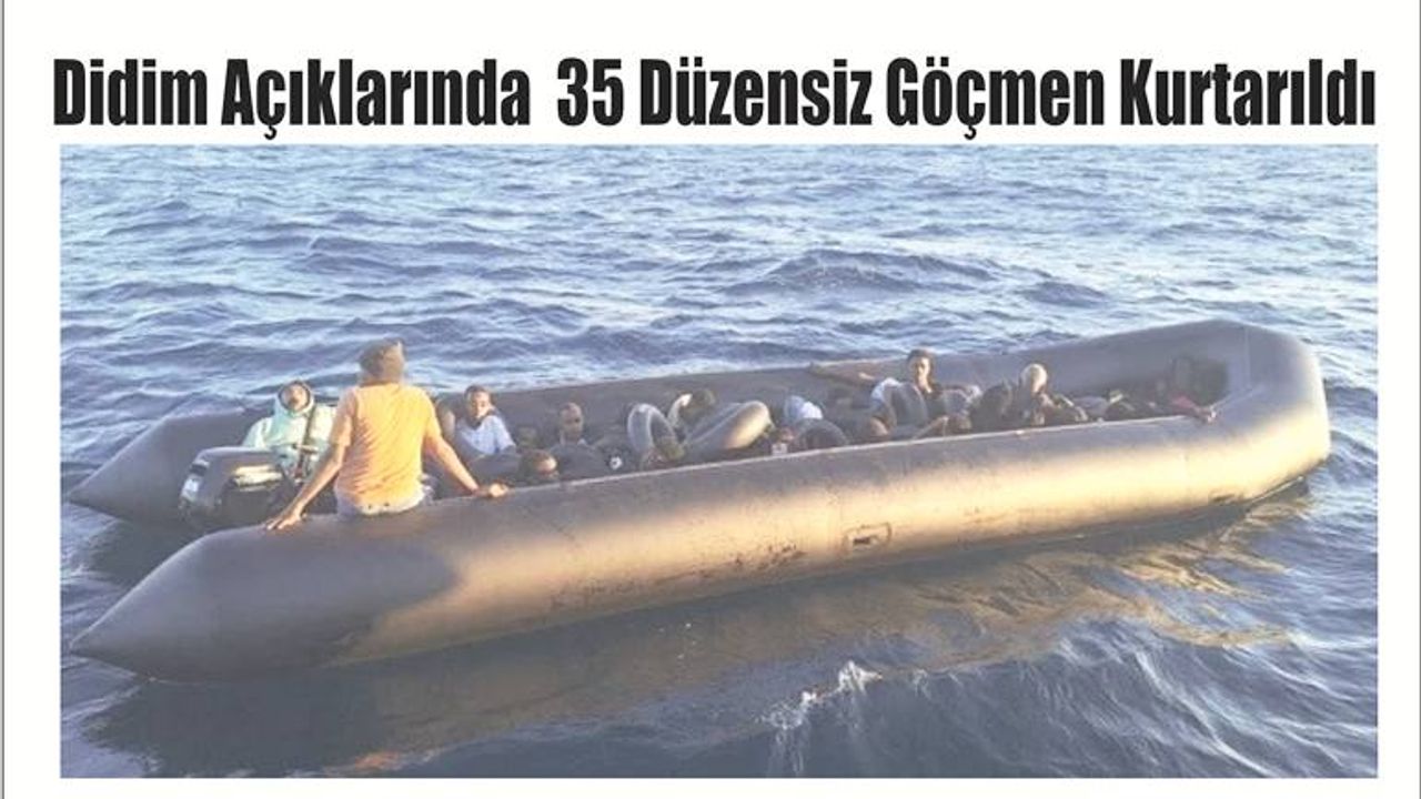 Aydın’ın Didim ilçesi açıklarında lastik botla Yunanistan’a geçmeye çalışan 35 düzensiz göçmen, Sahil Güvenlik ekiplerince düzenlenen başarılı operasyonla kurtarıldı. Göçmenlerin, Yunanistan unsurlarınca Türk karasularına geri itildiği öğrenildi.