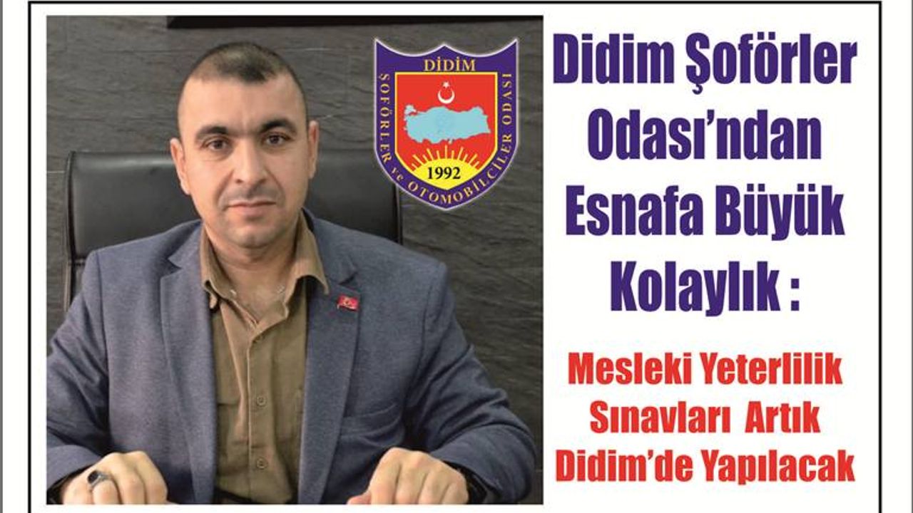Bu önemli hizmet sayesinde Didim, Mesleki Yeterlilik Sınavları konusunda bölgesinde öncü bir merkez haline gelirken, Didimli esnaf ve çalışanlar için de büyük bir kolaylık sağlanmış olacak. HABER : ERGUN KORKMAZ