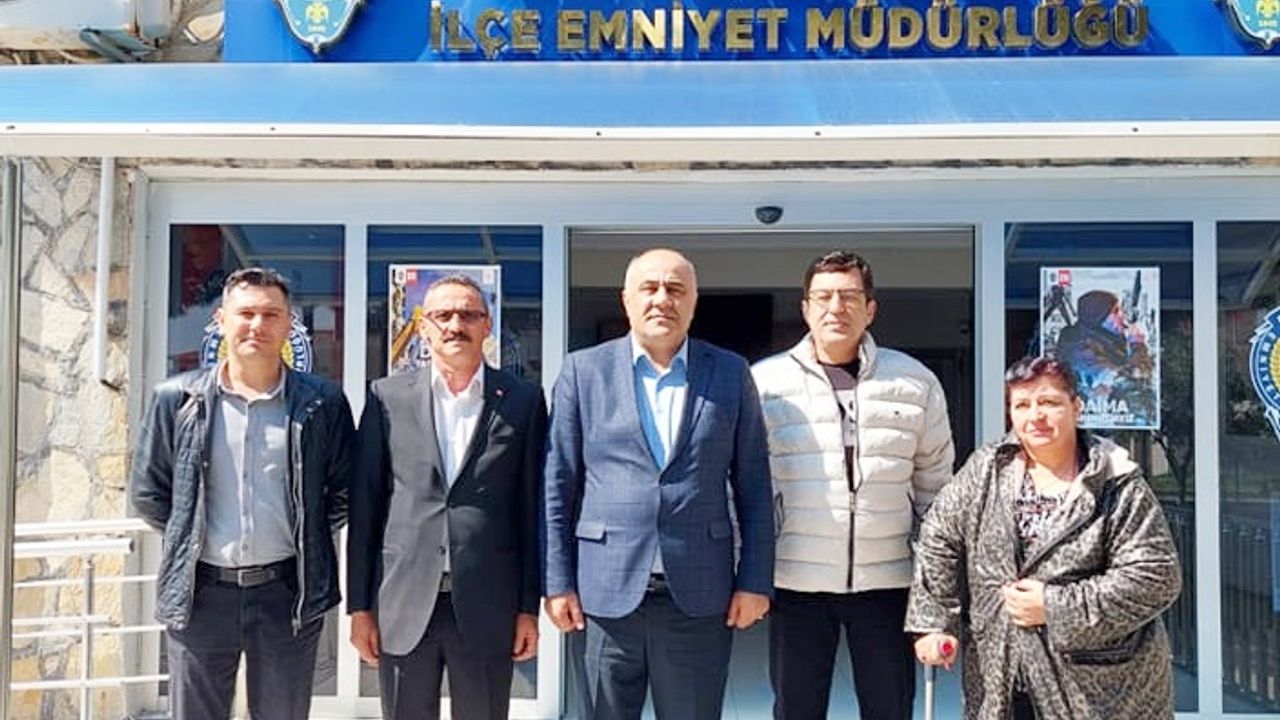 Polis Haftası sebebiyle Didim İlçe Emniyet Müdürlüğü’nü ziyarette bulunan DİYED, İlçe Emniyet Müdürü Yunus Dinç ve emniyet mensuplarının gününü kutladı. İlçe Emniyet Müdürü Yunus Dinç’i makamında ziyarette bulunan Dernek Yönetim Kurulu üyeleri, Didim halkının huzur ve güvenliğini tesis eden, can ve mal güvenliğini sağlayan tüm polis teşkilatına teşekkürlerini sunarak, emniyet Başta İlçe Emniyet Müdürü Yunus Dinç ve sonrasında emniyet mensuplarının gününü kutladı. Ziyaret, İlçe Emniyet Müdürlüğü önünde çekilen hatıra fotoğrafı ile sonlandı.