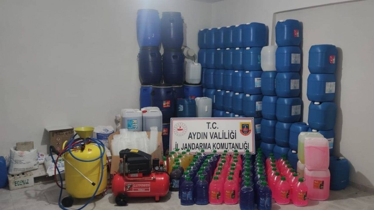 Aydın İl Jandarma Komutanlığı İstihbarat Şube Müdürlüğü ekiplerince lisansız temizlik malzemelerin imalatını yapan şahsa yönelik operasyon gerçekleştirildi. Edinilen bilgiye göre, Davutlar Mahallesi’nde B.B. isimli şahsa ait depoda İlçe Tarım Müdürlüğü ekipleri ile birlikte yapılan aramada bin 160 litre çamaşır suyu, 478 litre yüzey temizleyici, 649 litre araç yıkama deterjanı, 382 litre deterjan yapımında kullanılan sülfonik asit ve kimyasal sıvı ham madde, 2 adet sıvı dolum makinesi, 545 adet boş plastik şişe, 1 adet kompresör, 1 adet elektronik terazi, 11 bin 352 adet etiket, 340 adet son tüketim tarihi geçmiş cevizli sucuk ele geçirildi. Yakalanarak gözaltına alınan şüpheli şahıs hakkında Kaçakçılıkla Mücadele Kanuna Muhalefet ve 6769 Sayılı Sınai Mülkiye Kanunu çerçevesinde adli işlem başlatıldı.
