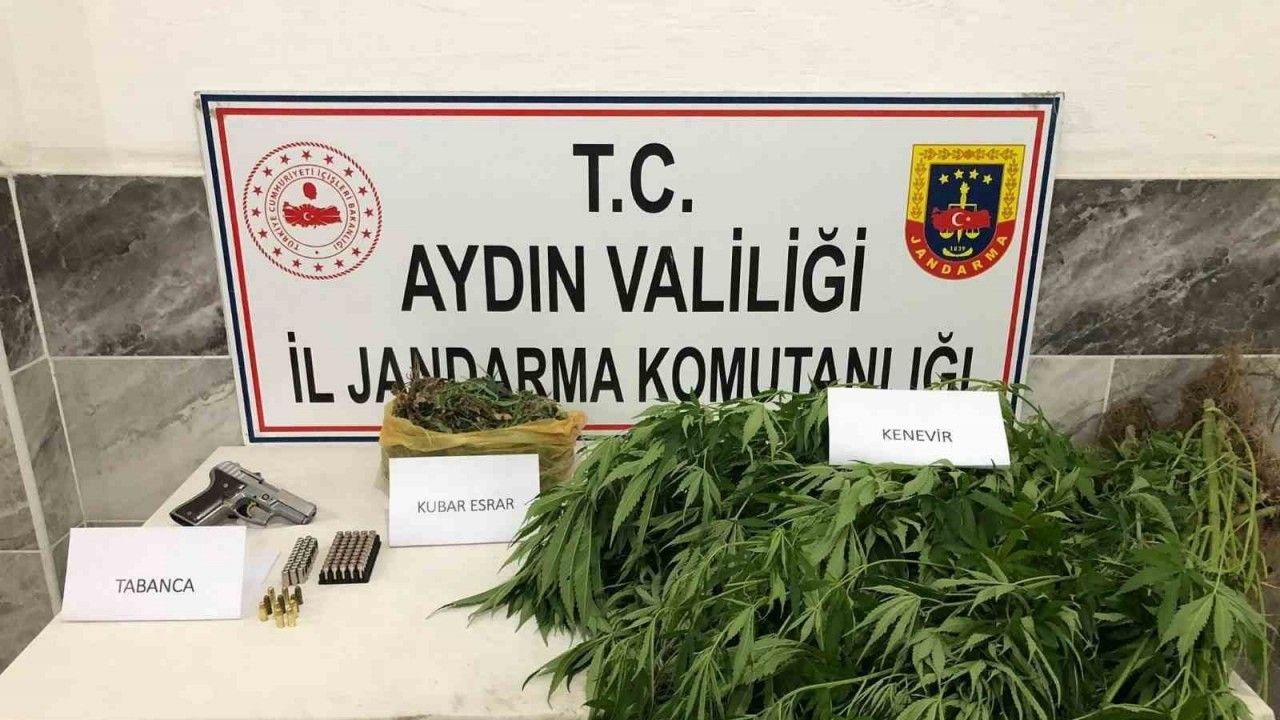 Aydın İl Jandarma Komutanlığı, İstihbarat Şube Müdürlüğü ve Efeler İlçe Jandarma Komutanlığı uyuşturucu madde imal ve ticaretini yapan şahıslara yönelik koordineli çalışmalarına aralıksız devam ediyor. Edinilen bilgiye göre ekipler, Efeler’de 1 şüpheli şahsın ikametinde uyuşturucu imal ve satışı yaptığını tespit etti. Operasyon için düğmeye basan jandarma ekipleri, tespit edilen adrese baskın düzenledi. Baskında 1 şüpheli yakalanırken, evde yapılan aramada bin 500 gram kubar esrar maddesi, 40 kök kenevir bitkisi, 1 adet tabanca, şarjör, 11 adet fişek ele geçirildi. Yakalanarak gözaltına alınan şüpheli hakkında adli işlem başlatıldı.