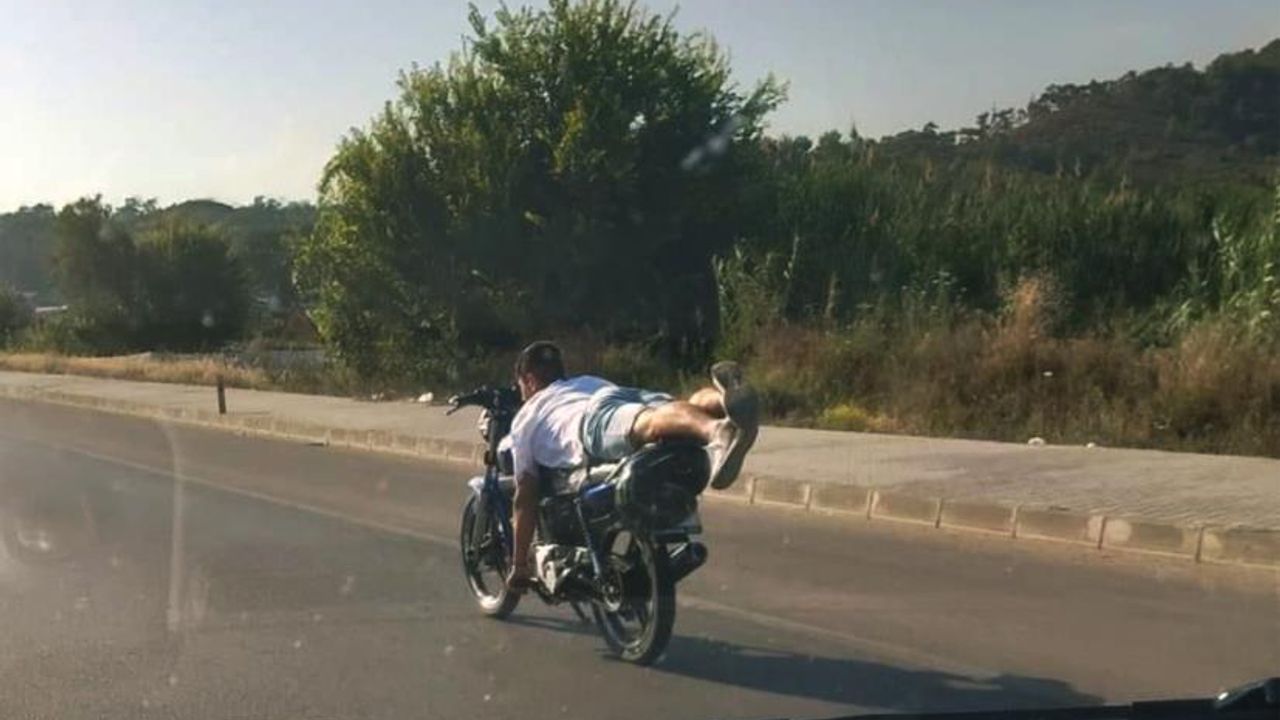 Fethiye Çiftlik Mahallesi çevre yolunda motosikletin üzerine yatarak trafiği tehlikeye düşüren sürücü, Fethiye Trafik Büro Amirliği ekiplerince yakalandı. Trafik ekipleri tarafından sürücüye 5 ayrı maddeden toplam ayrı ayrı ceza yazıldı.
