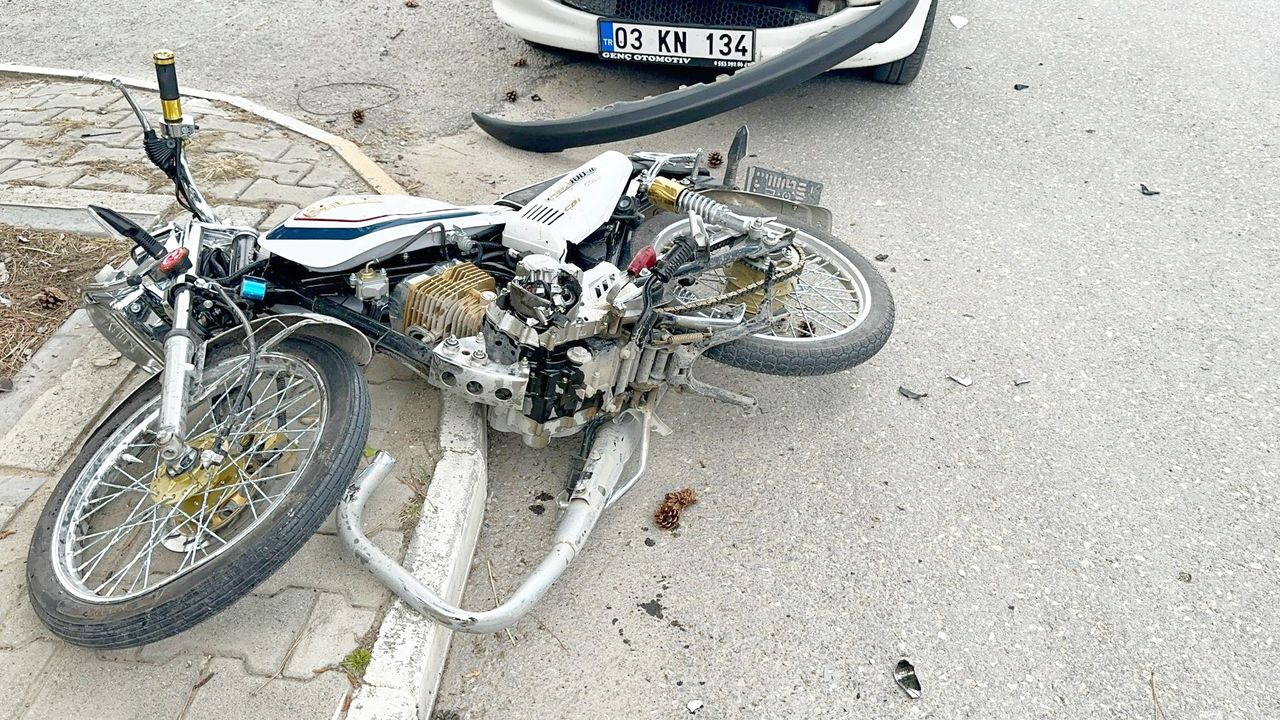 Kaza, Bolvadin ilçesi İstasyon Caddesi üzerinde meydana geldi. Edinilen bilgilere göre, İ.T. idaresindeki 03 KN 134 plakalı otomobil sağa dönüş yapmaya çalıştığı anda yine yolun sağ tarafından gelen A.B.T. (15) yönetimindeki 03 AES 164 plakalı motosiklete çarptı. Çarpmanın etkisiyle motosiklet sürücüsü A.B.T. ile yanındaki H.T. (15) metrelerce ileri savrularak yaralandı. Kazanın ardından çevredekilerin haber vermesi ile bölgeye çok sayıda polis ve 112 Acil servis ekibi sevk edildi. Olay yerine gelen sağlık ekipleri yaralıları ambulanslar ile hastanelere kaldırdı. Yaralıların sağlık durumlarının ciddiyetini koruduğu bildirildi.