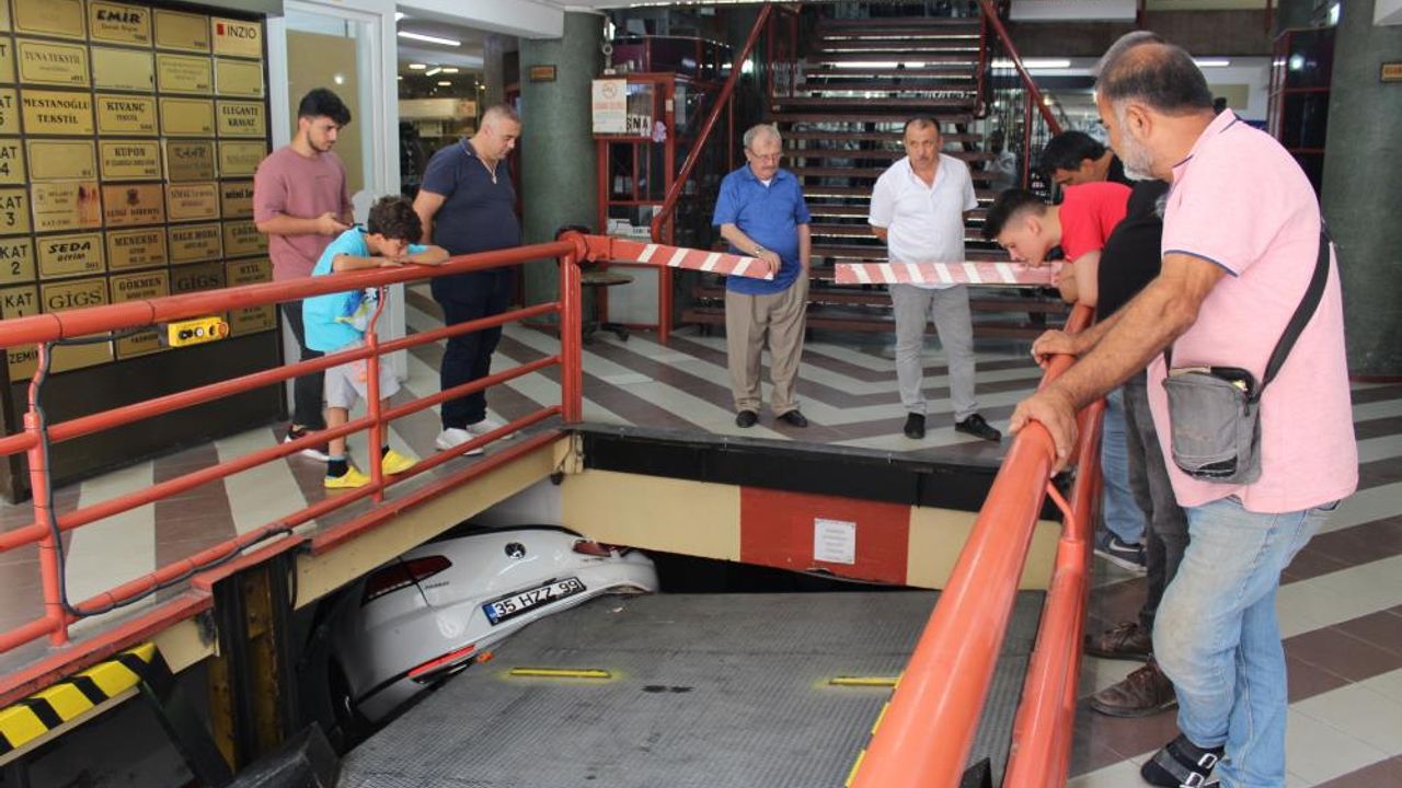 Olay, saat 11.30 sıralarında İzmir’in Konak ilçesinde bulunan Mimar Kemalettin İş Merkezinin asansörlü otoparkında meydana geldi. 35 HZZ 99 plakalı Volkswagen Passat araç sürücüsü, asansörü kullanarak bir alt kata aracını park etmek istedi. İddiaya göre, asansör alt kata inerken bir anda arıza nedeniyle tekrar yukarı çıkınca aracın arka kısmı asansör tabanı ve otopark katı arasına sıkıştı. Sürücü, kazayı yara almadan atlatırken, polis ekipleri olayla ilgili soruşturma başlattı. Aracın durumunu görünce çok şaşırdığını belirten Ökkeş Doğan isimli vatandaş, "Asansör arıza yapınca asansör aşağıya düşmüş. Neyse ki cana zarar gelmemiş. Aracı böyle görünce şaşırdık. Yoldan geçerken gördüm, ilk kez böyle bir kaza görüyorum. Böyle yerlerin emniyetli olması lazım ama kazanın tam olarak neden olduğunu da bilmiyorum” dedi.(İHA)