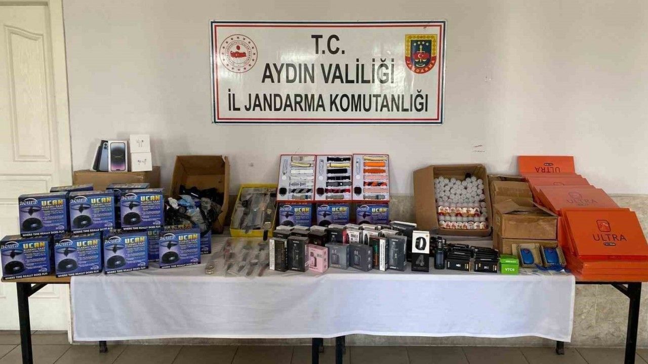 Aydın İl Jandarma Komutanlığı KOM Şube Müdürlüğü, Siber Suçlarla Mücadele Şube Müdürlüğü ve Nazilli İlçe Jandarma Komutanlığı ekipleri tarafından gerçekleştirilen operasyon çerçevesinde piyasa değeri yaklaşık 650 bin TL olan kaçak eşya ele geçirildi.