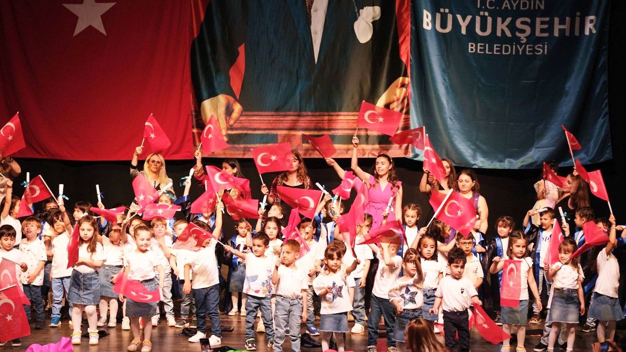 Aydın Büyükşehir Belediyesi’nin çocuk gelişim merkezleri, her yaştan çocuğa eğitimde fırsat eşitliği vermeye devam ediyor. Kep atarak eğitimlerinin ilk adımlarını başarıyla tamamlayan çocuklar, yıl boyunca öğrendiklerini sergileme fırsatı buldu. Yeteneklerini ve öğrendiklerini sergilemek için sahneye çıkan minikler, zeybek oyunundan İngilizce gösterilerine kadar birçok etkinlikle ailelerini gururlandırdı. Çocuklar, Şükran Güngör-Yıldız Kenter Kültür Merkezi ve Tiyatro Salonu’nda düzenlenen törende gece sonunda temsili diplomalarını da aldı.